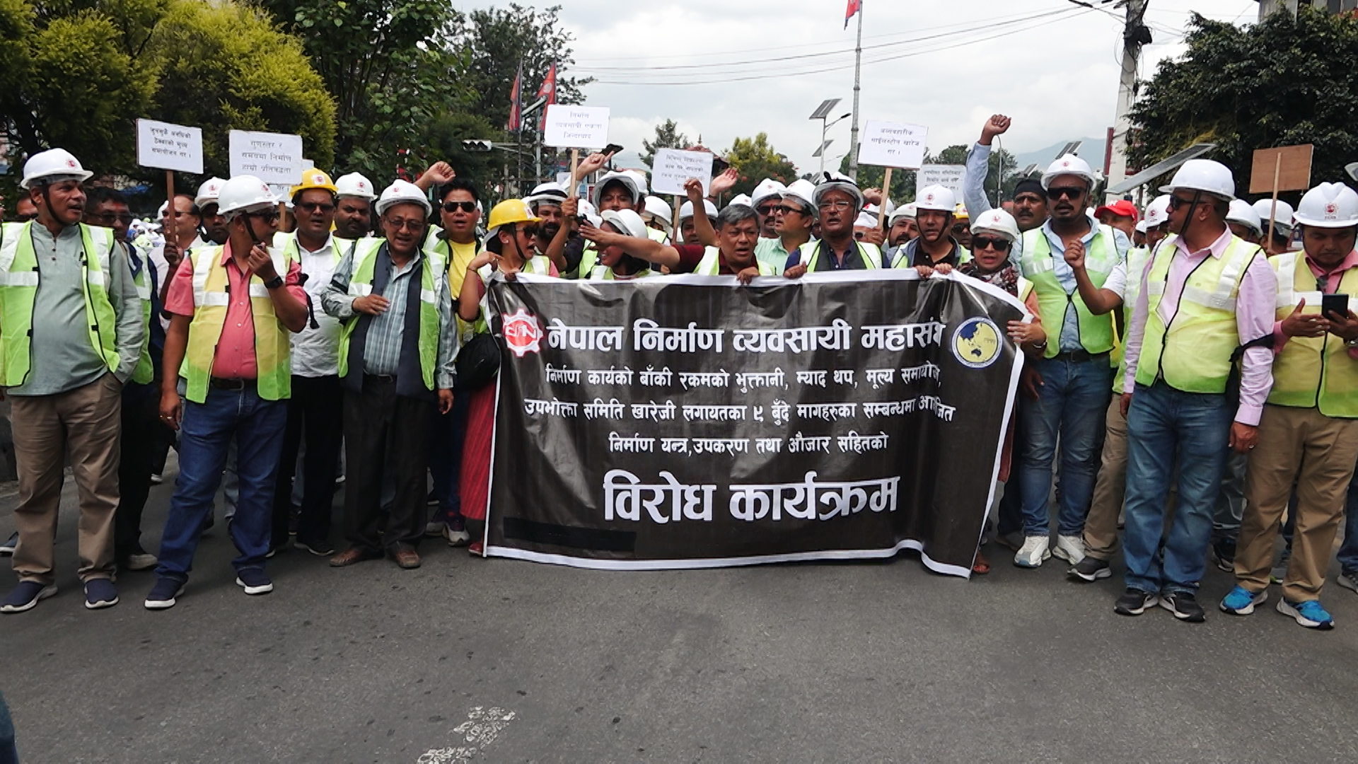 निर्माण व्यवसायीकाे विरोध प्रदर्शन :