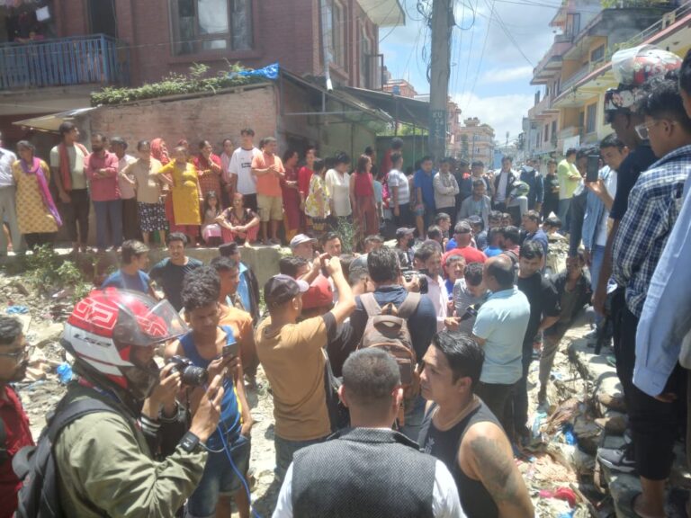 स्ल्याब हटाउन गएको महानगरको नगरप्रहरी र स्थानीयबीच झडप समेत भएको थियो । स्थानीयको विरोध पछि डोजर चल्न दिइएको छैन् ।