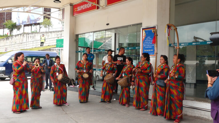 नेपाल पर्यटन बोर्डले पहिलो पटक नेपाल आएका बंगलादेशी पर्यटकहरूलाई पञ्चेबाजा सहित स्वागत गरेको छ । बोर्डले शुक्रबार त्रिभूवन अन्तर्राष्ट्रिय विमानस्थलमा पन्चेबाजा सहित भव्य स्वागत गरेको हो ।