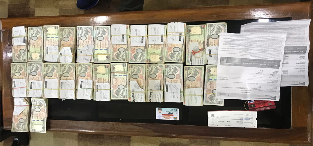 उक्त रकम लिएर सापकोटा श्री एयरलाइन्सको उडानबाट नेपालगञ्जदेखि काठमाडौँ जाँदै थिए । सापकोटालाई थप अनुसन्धानका लागि जिल्ला प्रहरी कार्यालयमा राखिएको छ ।