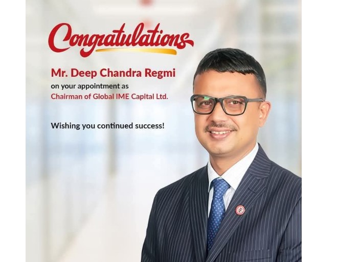 काठमाडौं । ग्लोबल आइएमई क्यापिटल लिमिटेडको अध्यक्षमा दिपचन्द्र रेग्मी भएका छन् । क्यापिटलको सञ्चालक समितिको बैठकले सञ्चालकको अध्यक्षमा हाल क्यापिटलकै सञ्चालक रहेका रेग्मीलाई अध्यक्ष पदमा चयन गर्ने निर्णय गरेको हो ।