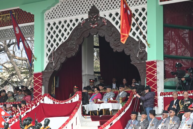 काठमाडौँ । राष्ट्रपति रामचन्द्र पौडेल महाशिवरात्री तथा नेपाली सेना स्थापनाको २६२ औं वार्षिकोत्सबको अवसरमा नेपाली सेनाद्वारा आयोजना गरिएको सेना दिवस २०८१ को उपलक्ष्यमा सैनिक मञ्च टुँडिखेलमा बुधबार बढाईं तथा सैनिक कला प्रदर्शनी विशेष समारोहमा सरिक भएका छन् ।