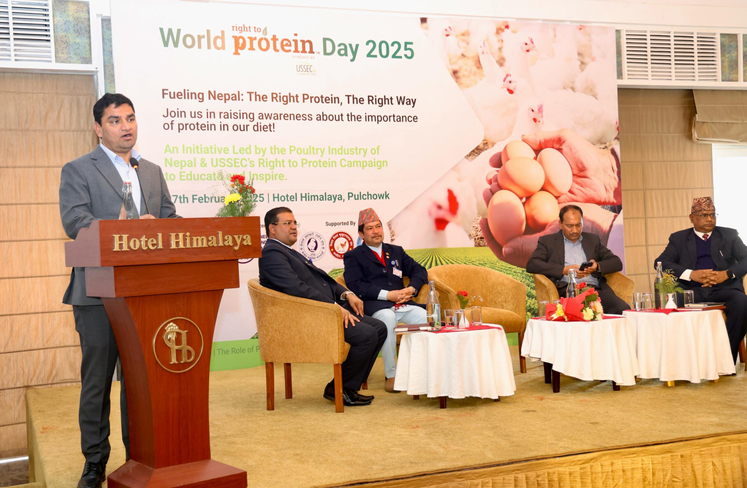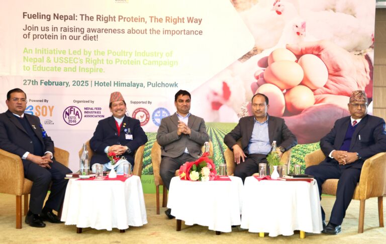 काठमाडौं । राइट टु प्रोटिन (RTP) नेपाल, नेपाल फिड इन्डस्ट्रीज एसोसिएसन, नेपाल ह्याचरी एसोसिएसन, नेपाल लेयर्स पोल्ट्री फार्मर्स एसोसिएसन, पशुपन्छी औषधी ब्यबसायी संघ नेपाल तथा युसेक (USSEC) को संयुक्त आयोजनामा “मानव स्वास्थ्यमा प्रोटिनको भूमिका” विषयक विशेष कार्यक्रम सम्पन्न भएको छ ।