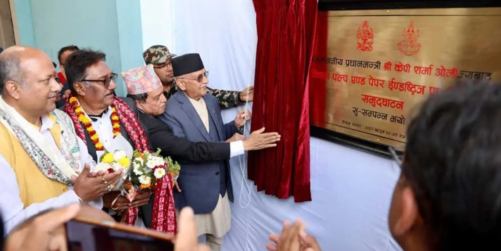 उद्घाटन लगत्तै प्रधानमन्त्री ओलीले कागज उत्पादन प्रक्रिया र उद्योगमै रहेको वातावरण मैत्री क्यालसियम कार्वोनेट उत्पादनको समेत अवलोकन गरे । २ अर्ब रुपैयाँ लगानी रहेको यो उद्योगले अब दैनिक ७५ मेट्रिक टन लेखन तथा छपाई कार्यका लागि उपयुक्त गुणस्तरीय कागज औद्योगिक स्तरमा उत्पादन गर्न थालेको छ ।