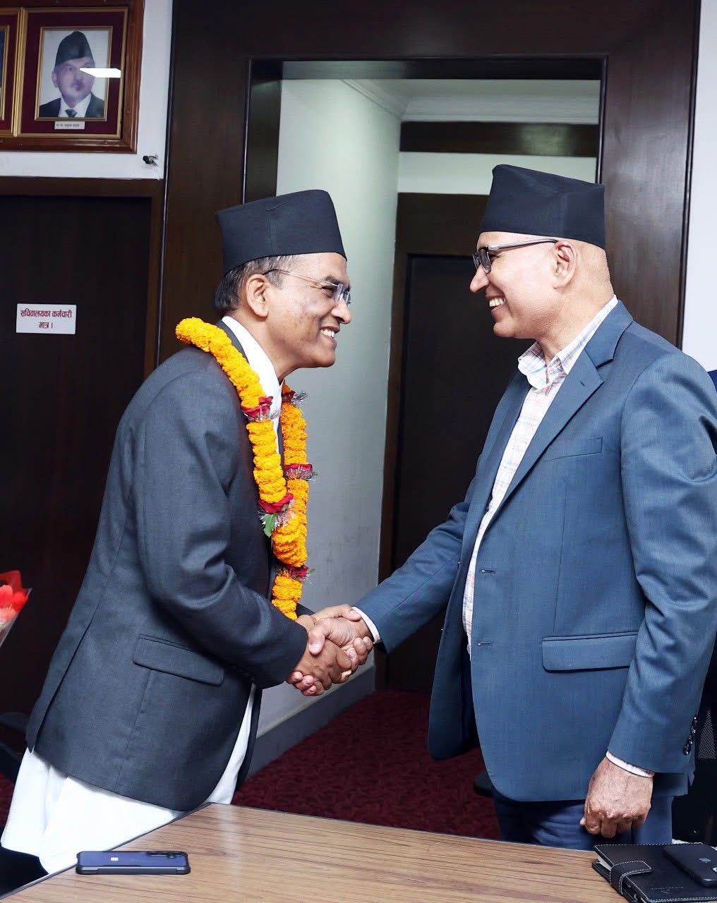 मन्त्री पौडेललु बुधबार गभर्नर पौडेललाई बधाई तथा कार्यकाल सफलताको शुभकामना दिएका हुन् ।