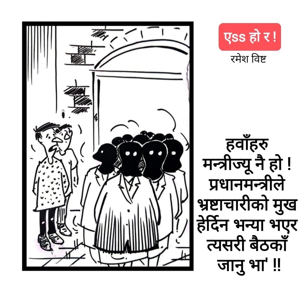 कार्टुन: प्रधानमन्त्रीले भ्रष्टाचारीको मुख हेर्दिनँ भनेपछि मन्त्रीहरू मुकुन्डो ओढेर भेट्न जाँदै प्रकाशित : १२ जेष्ठ २०८२, आइतबार