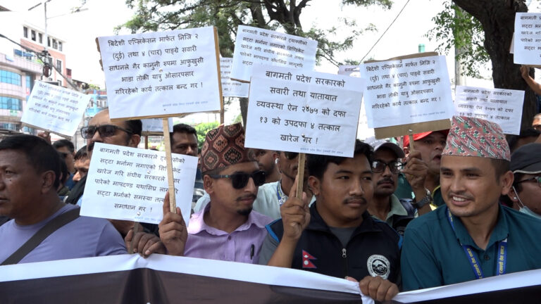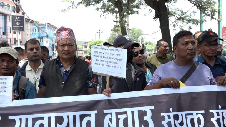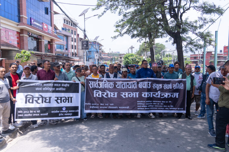 काठमाडौं । सार्वजनिक यातायात बचाऊ संघर्ष समितिले आइतबार माइतीघरमा विरोध प्रदर्शन गरेको छ ।