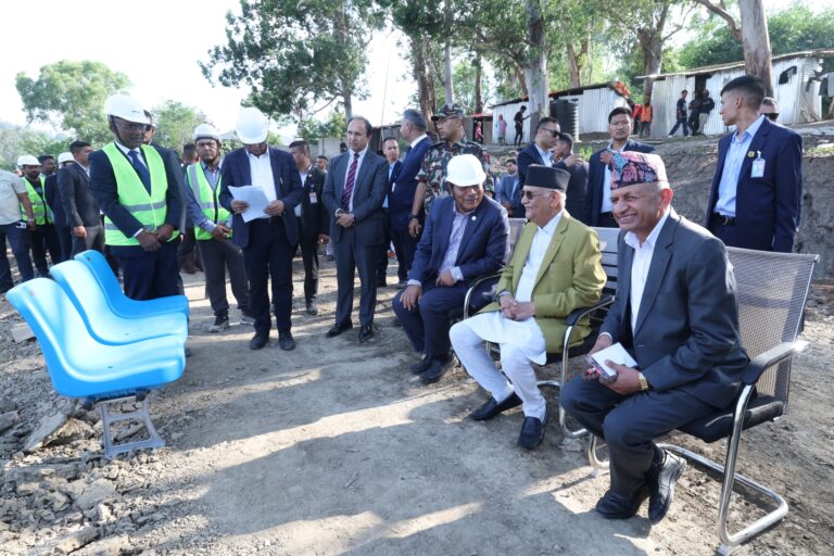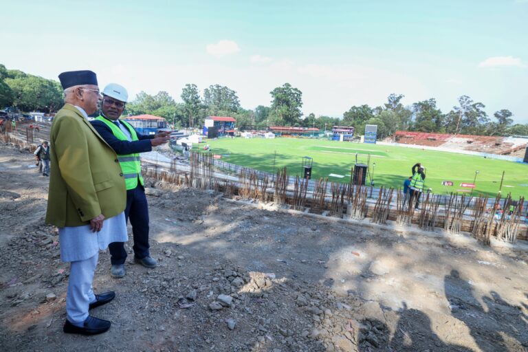 काठमाडौं । प्रधानमन्त्री केपी शर्मा ओलीले कीर्तिपुरस्थित क्रिकेट मैदानमा निर्माणाधीन अन्तर्राष्ट्रियस्तरको प्याराफिट र फ्लडलाइट जडान कार्यको स्थलगत निरीक्षण गरेका छन् ।