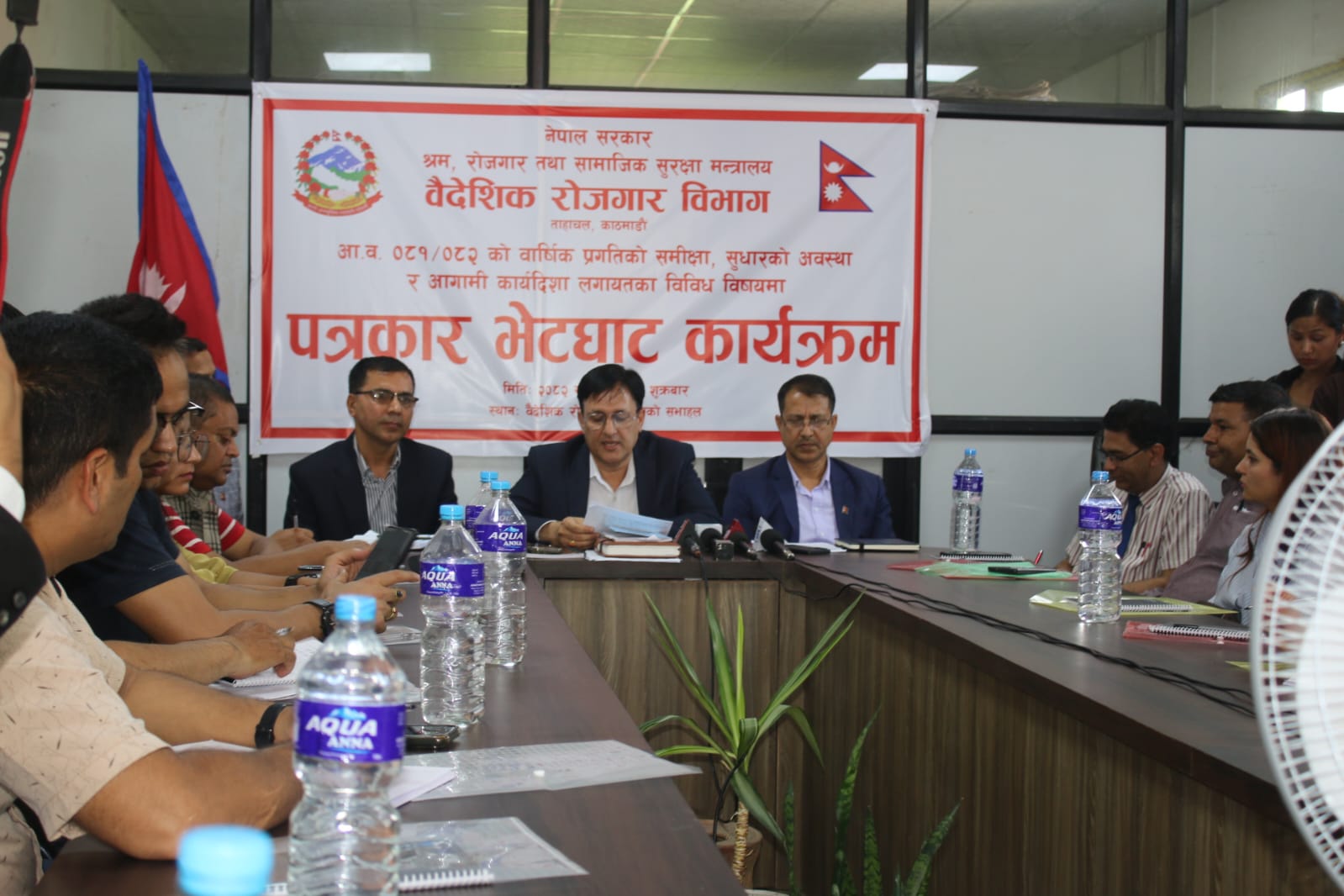 काठमाडौं । वैदेशिक रोजगार विभागले आर्थिक बर्ष ०८१/०८२ को वार्षिक प्रगतिको समीक्षा, सुधारको अवस्था र आगामी कार्यदिशा लगायत सार्वजनिक गरेको छ । शुक्रबार काठमाडौं पत्रकार सम्मेलनको आयोजना गर्दै विभागले उक्त विवरण सार्वजनिक गरेको हो ।