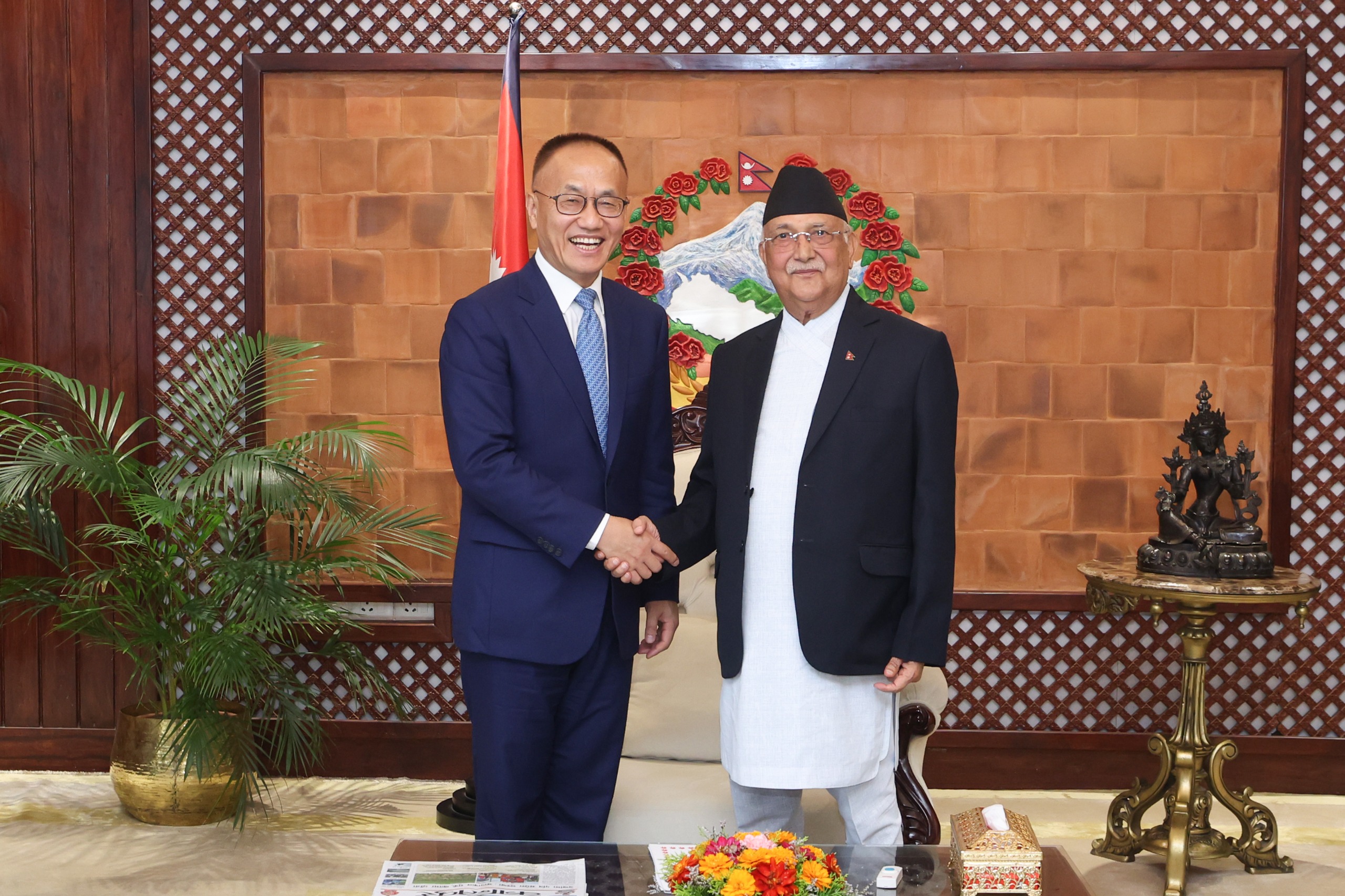 काठमाडौँ । प्रधानमन्त्री केपी शर्मा ओलीसँग चीनको अन्तरर्राष्ट्रिय विकास सहायता नियोग ९सिड्का० का अध्यक्ष चेन सियाओदोङ्ग नेतृत्वको प्रतिनिधिमण्डलले आज शिष्टाचार भेट गरेको छ ।