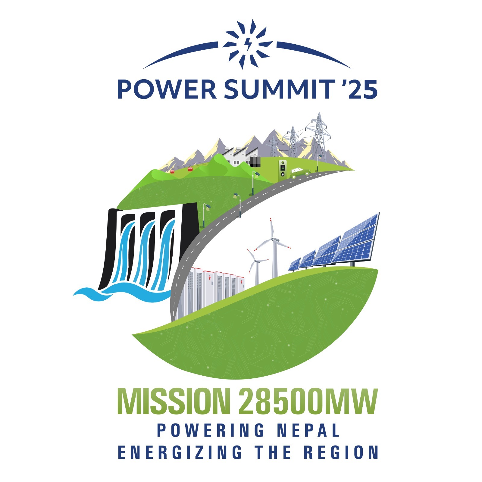 ‘मिसन २८ हजार ५०० मेगावाट: पावरिङ नेपाल, इनर्जाइजिङ रिजन’ भन्ने मुल नारा सहित आयोजना हुन लागेको समिटको लोगोमा नेपालको ऊर्जा क्षेत्रमा भइरहेको तीव्र विकास र भविष्यको उच्चस्तरको सम्भावना देखाइएको छ । यसको मूलखण्डमा रहेको हरियो पातजस्तै संरचनाले दिगोपनको संकेत गरेको छ भने, यहाँबाट नेपालको ऊर्जा उत्पादनका विभिन्न स्रोतहरू जस्तो जलविद्युत, सोलार, वीन लगायत पनि देखाइएको छ ।