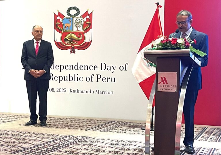 पेरु गणतन्त्रको २०४ औं स्वतन्त्रता दिवसका अवसरमा काठमाडौंस्थित अवैतनिक दूतावासद्वारा आयोजित कार्यक्रममा नेपालसमेत हेर्ने भारतका लागि पेरु गणतन्त्रका राजदूत पाउलिनिचले नेपालले पर्यापर्यटनसहित जलविद्युत् उत्पादनका क्षेत्रमा गरेको प्रयाशको प्रशंशा गरे ।