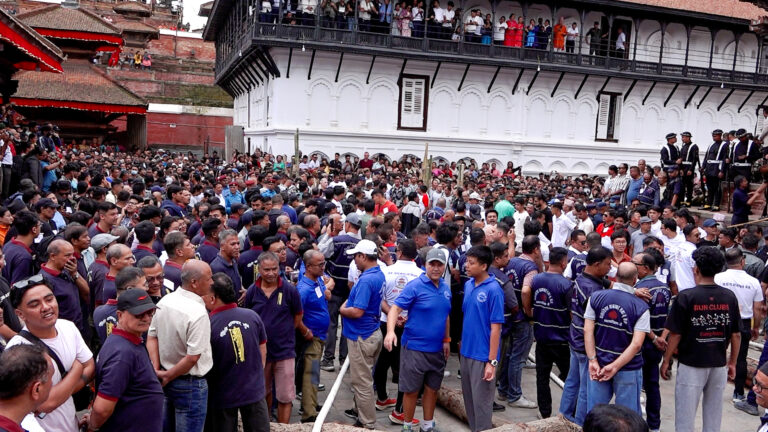 नेपाली सेनाको सहयोगमा हनुमान ढोका (कालभैरव क्षेत्र)बाट इन्द्रजात्राको लिङ्गो ठड्याएर इन्द्रध्वजोत्थान गरिएको हो ।
