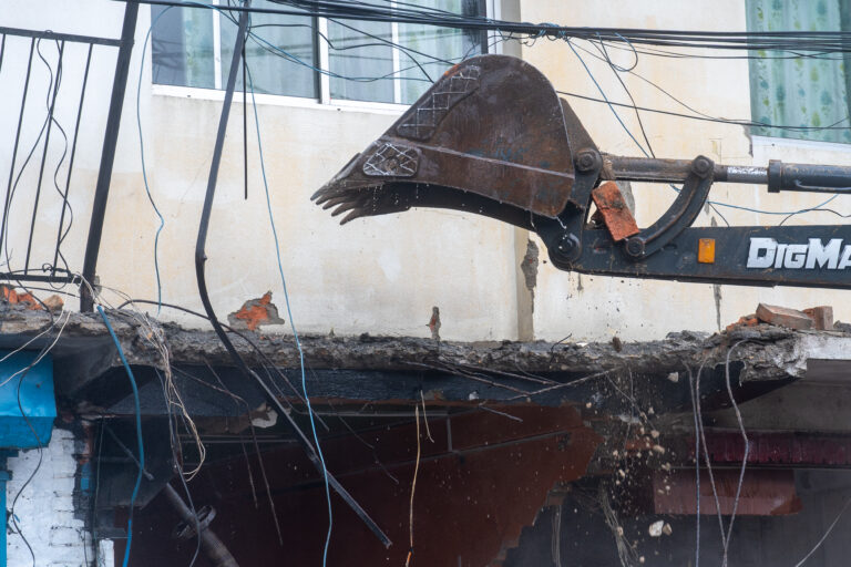 महानगरपालिकाले ३५ दिनको सूचना अवधि दिएर भवन खाली गर्न आग्रह गरेको थियो । सो अवधि शनिबार सकिएपछि आइतबार कार्यालय समयमै डोजर प्रयोग गरी भवनहरू भत्काइएको हो ।