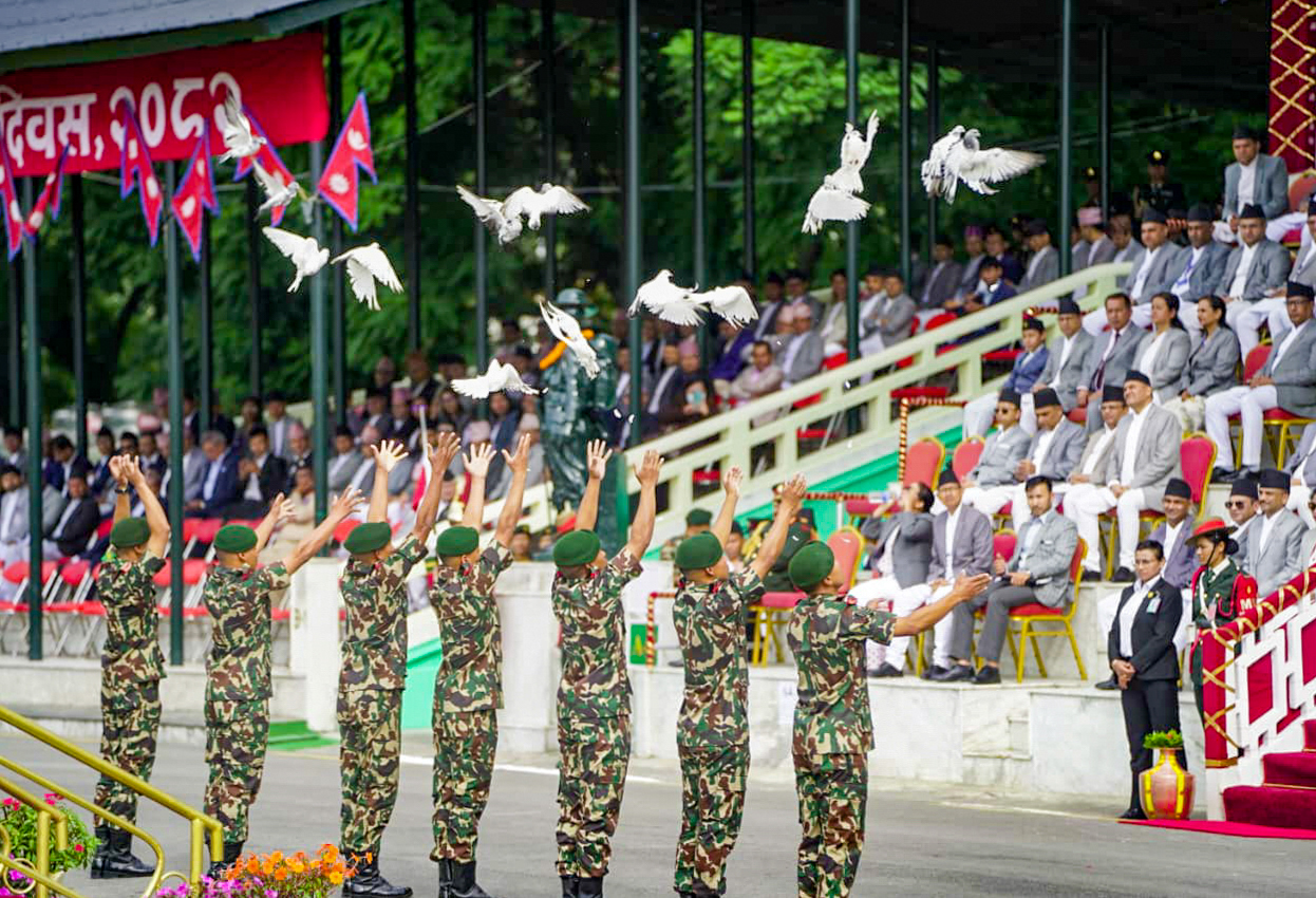 काठमाडौं । आज संविधान दिवस तथा राष्ट्रिय दिवस, २०८२ सैनिक मञ्च, टुँडिखेलमा विविध कार्यक्रमको आयोजना गरी मनाइएको छ । नेपाली जनताको लामो बलिदानीपूर्ण र लामो सङ्घर्षको उपलब्धिस्वरुप संविधानसभाबाट नेपालको संविधान २०७२ असोज ३ गते घोषणा भएको थियो ।