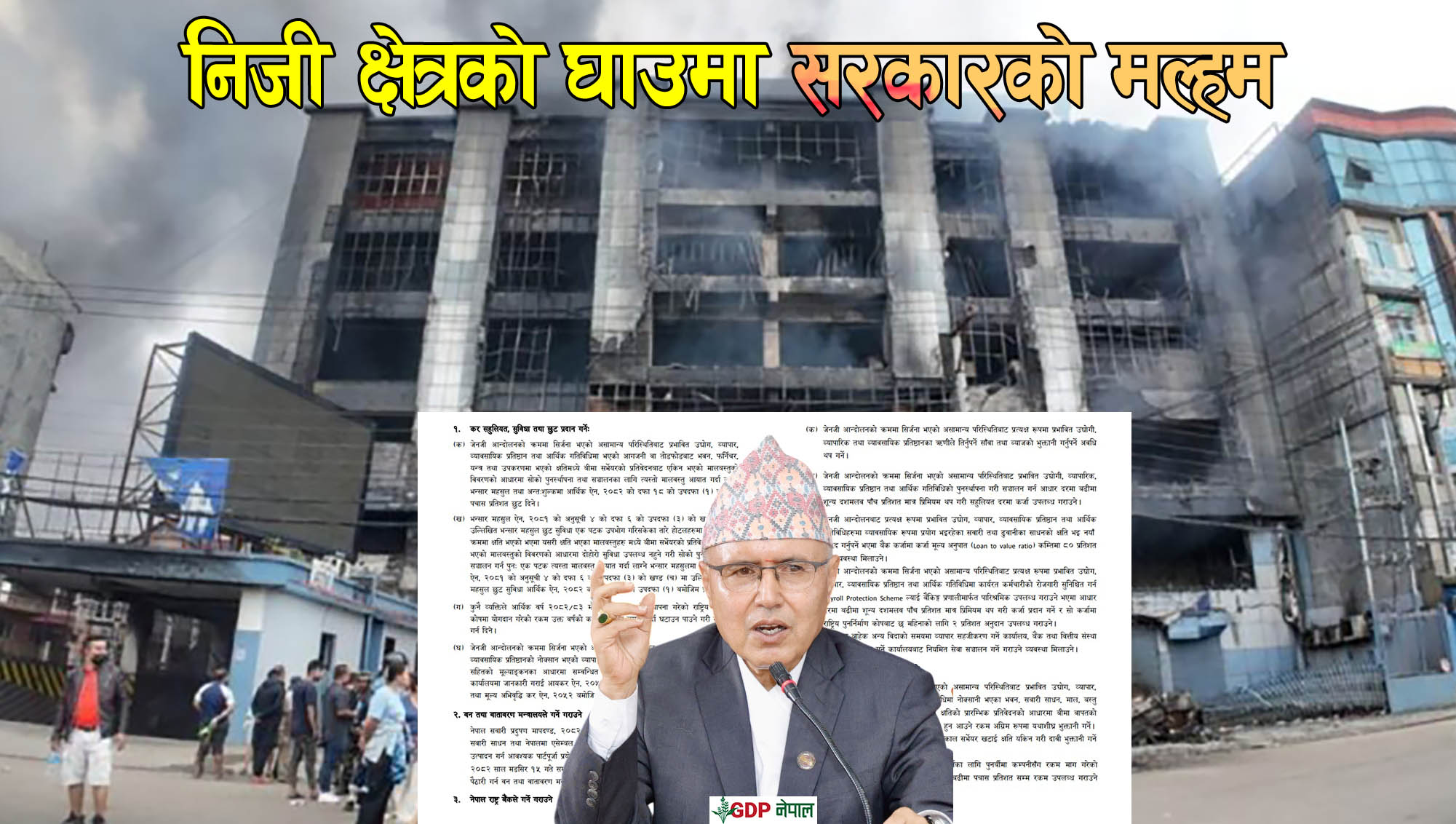 सरकारले प्रभावित उद्योग र होटल व्यवसायलाई पुनर्निर्माणका लागि भन्सार महसुल, कर तथा अन्य शुल्कमा छुट दिने घोषणा गरेको छ। भवन र सम्पत्तिमा भएको क्षतिको बीमा भुक्तानीलाई आयकर गणनामा छुटको आधार मानिनेछ। साथै, राष्ट्रिय पुनर्निर्माण कोषमा योगदान गर्ने व्यक्तिलाई पनि कर कटौतीको सुविधा उपलब्ध हुनेछ।