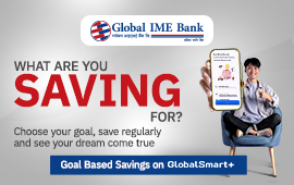 काठमाडौं । ग्लोबल आइएमई बैंक लिमिटेडले लक्ष्य निर्धारण गरी लक्ष्य अनुसारको रकम बचत गर्न सक्ने ‘गोल बेस्ड सेभिङ्ग’ योजना सार्वजनिक गरेको छ ।