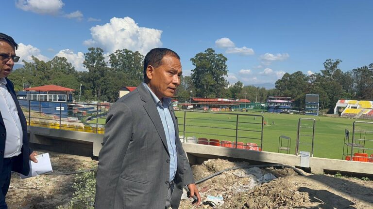 अवलोकनका क्रममा नेपाल क्रिकेट संघ क्यानका सचिव पारस खड्काले मन्त्रीसहितको टोलीलाई मैदान निर्माणको वस्तुस्थितिबारे जानकारी गराएका थिए ।