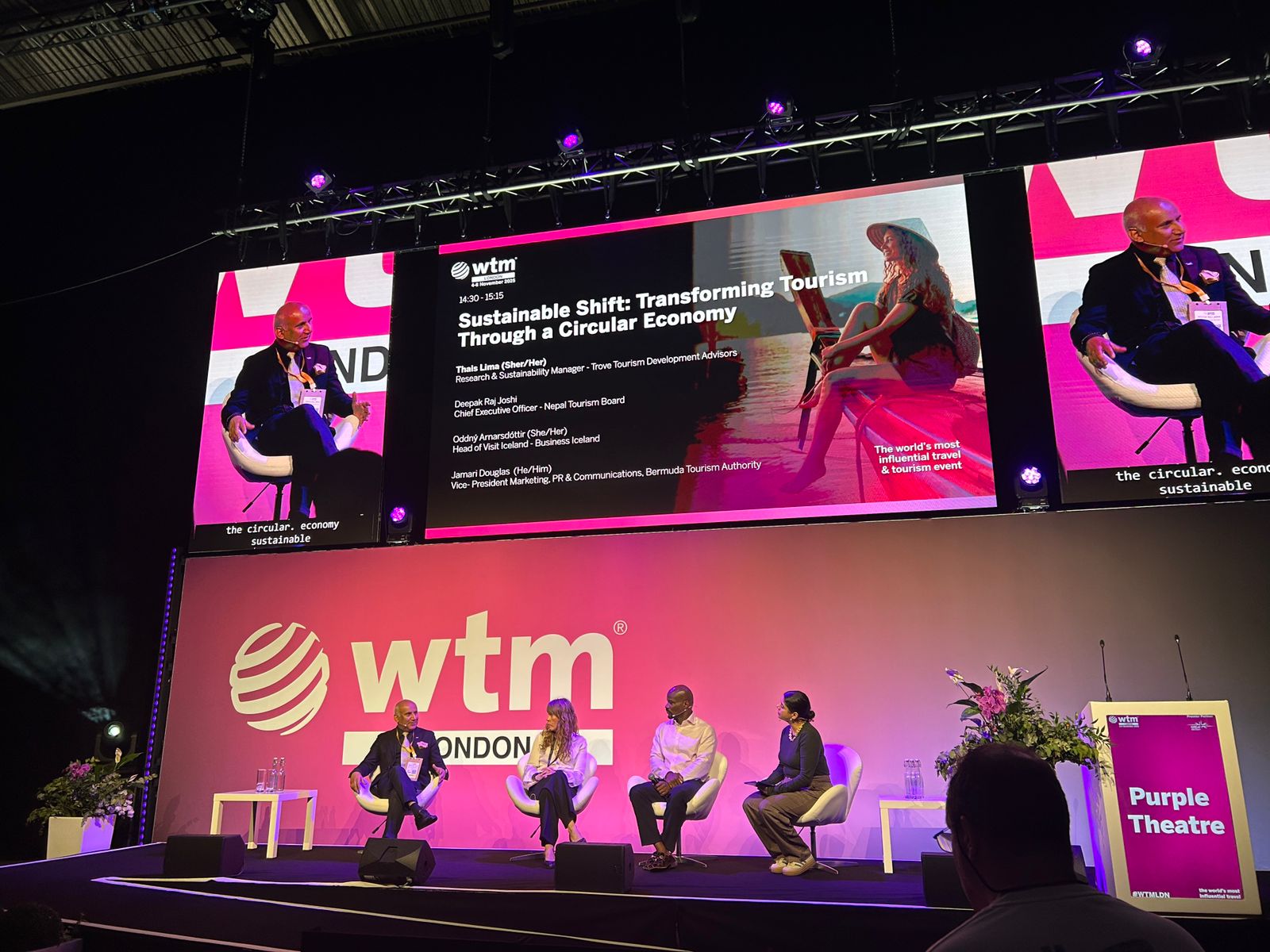 लन्डनको एक्सल लन्डनमा भएको वल्र्ड टुरिजम् मार्केट (डब्लुटीएम)– २०२५ का क्रममा ‘सस्टेनेबल सिफ्टः ट्रान्सफर्मिङ टुरिजम् थ्रु अ सर्कुलर इकोनमी’ (दीगो परिवर्तन: सर्कुलर इकोनमीमार्फत पर्यटन रूपान्तरण) शीर्षकमा भएको छलफल सत्रमा सहभागी रहेका सीईओ जोशीले नेपालले गरेका प्रयासहरुबारे उल्लेख गर्दै जिम्मेवार र दिगो पर्यटनप्रतिको नेपालको प्रतिबद्धता व्यक्त गरेका छन् ।