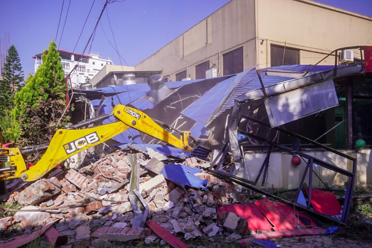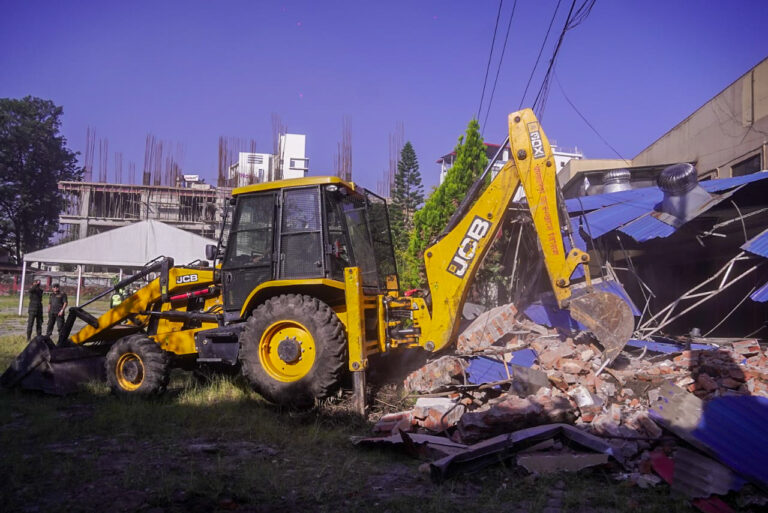 काठमाडौँ । लैनचौरस्थित नेपाल स्काउटको जग्गामा खड्का ल्यान्ड डेभलपमेन्ट प्रालिले बनाएको संरचनामा काठमाडौं महानगरपालिकाले डोजर चलाएको छ ।