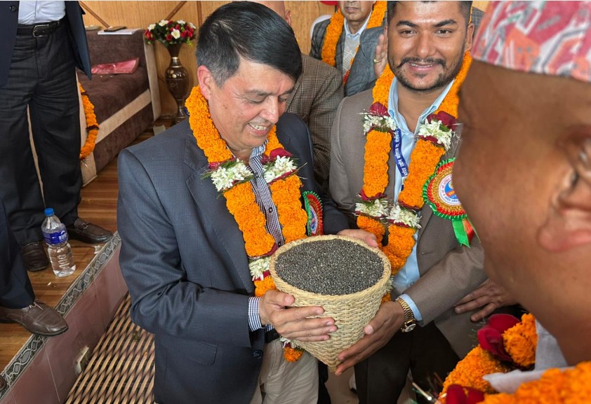 कार्यक्रम सकियो, अतिथिहरुको विदाइका तरखर सुरु भयो । अतिथिहरुलाई मायाको चिनो प्रदान गर्ने क्रममा डालिभरि मास लिएर आउनुभयो जिल्ला उद्योग वाणिज्य संघका अध्यक्ष रामकुमार डल्लाकोटी। परैबाट के होला कोशेली भनेर छुट्याउन नसकेपनि नजिकै उपस्थित हुनेहरुले थाहा पाए मास भनेर ।