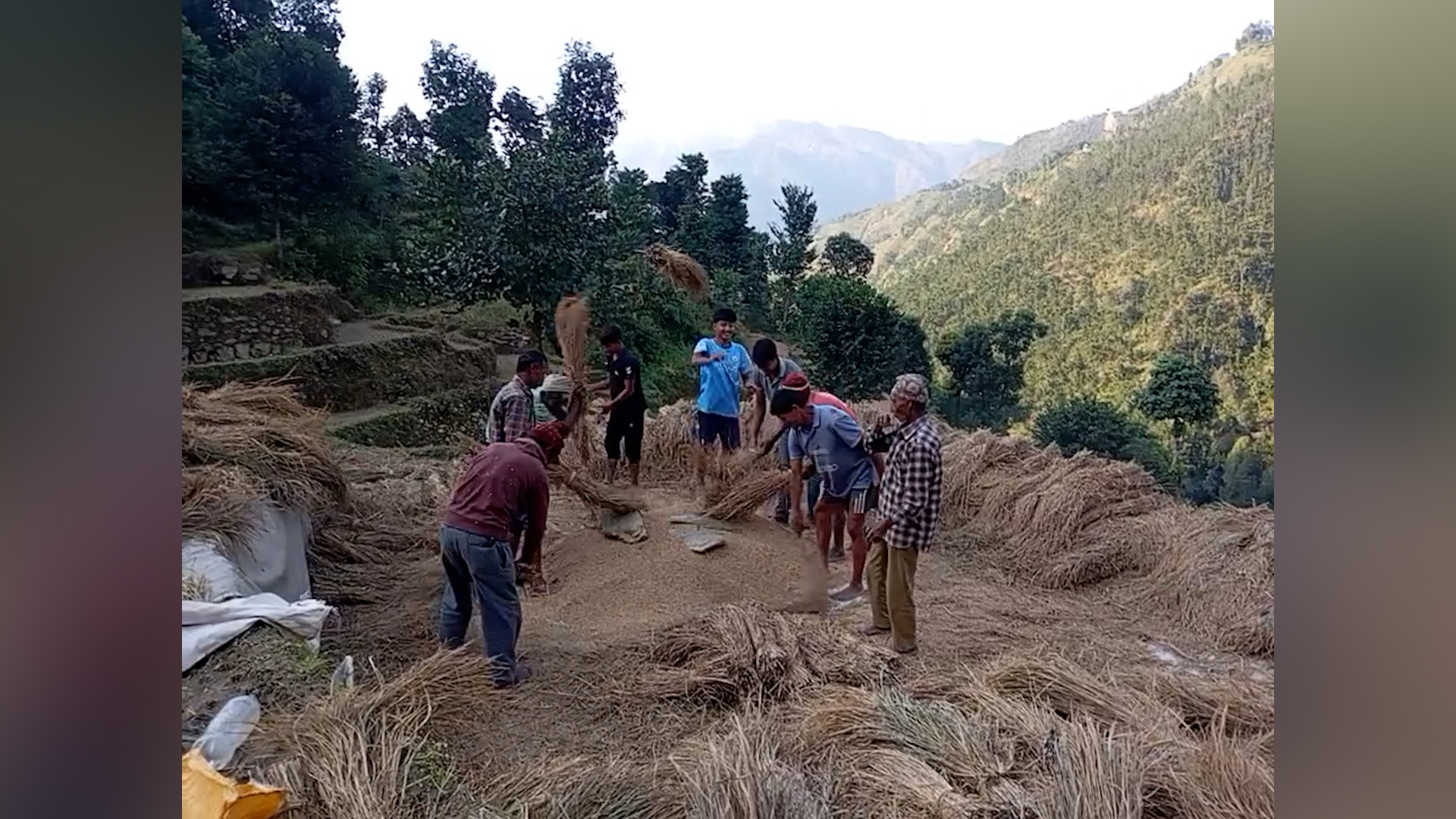 यस अघि कात्तिकको वर्षाले खेतमा पानी जम्दा काटिएको धान बालीमा क्षति बेहोरेका किसान अहिले केही ढिलागरी काटेको धान भित्र्याउँदै छन् ।