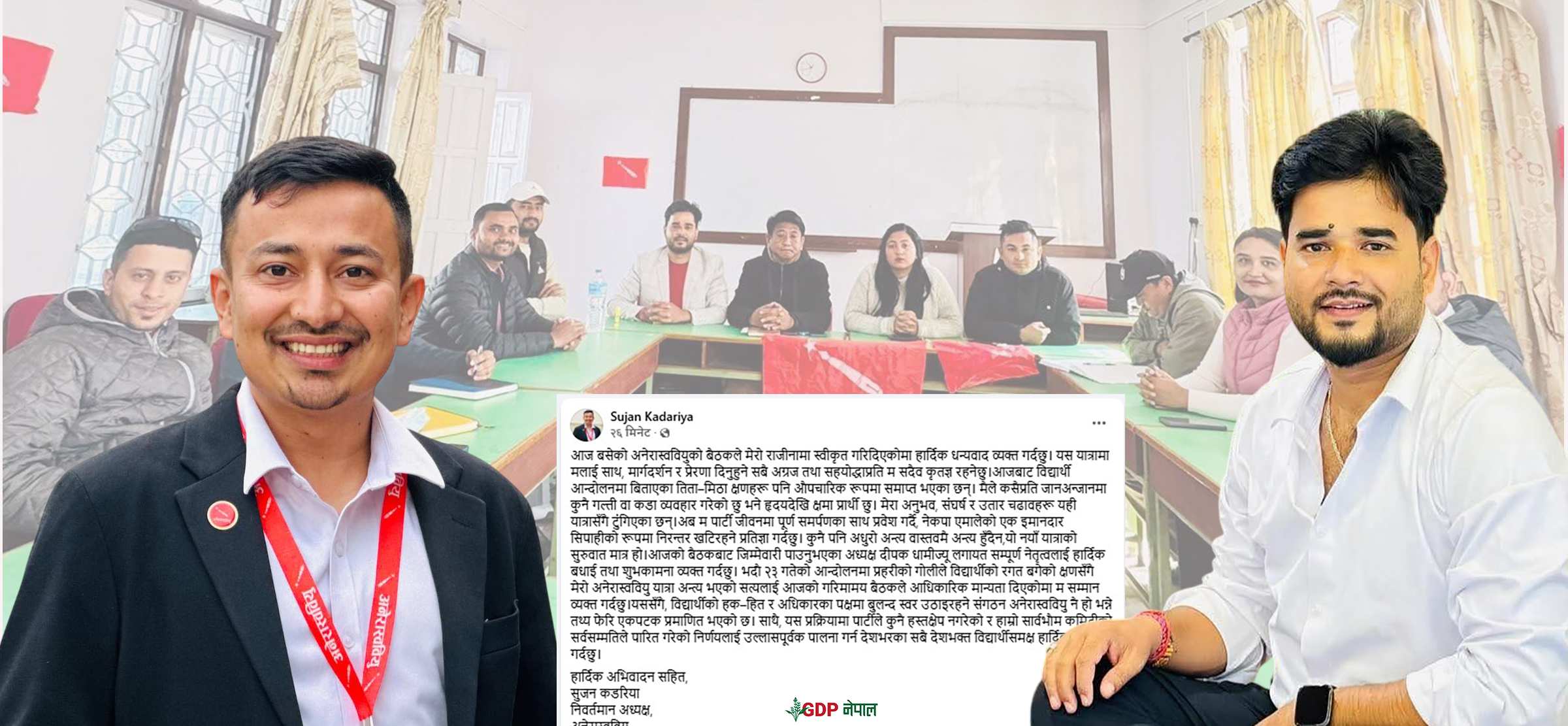 “आजबाट विद्यार्थी आन्दोलनमा बिताएका तिता–मिठा क्षणहरू पनि औपचारिक रूपमा समाप्त भएका छन्,” उनले राजीनामा पछि लेखेका छन्, “मेरा अनुभव, संघर्ष र उतार चढावहरू यही यात्रासँगै टुंगिएका छन् ।”