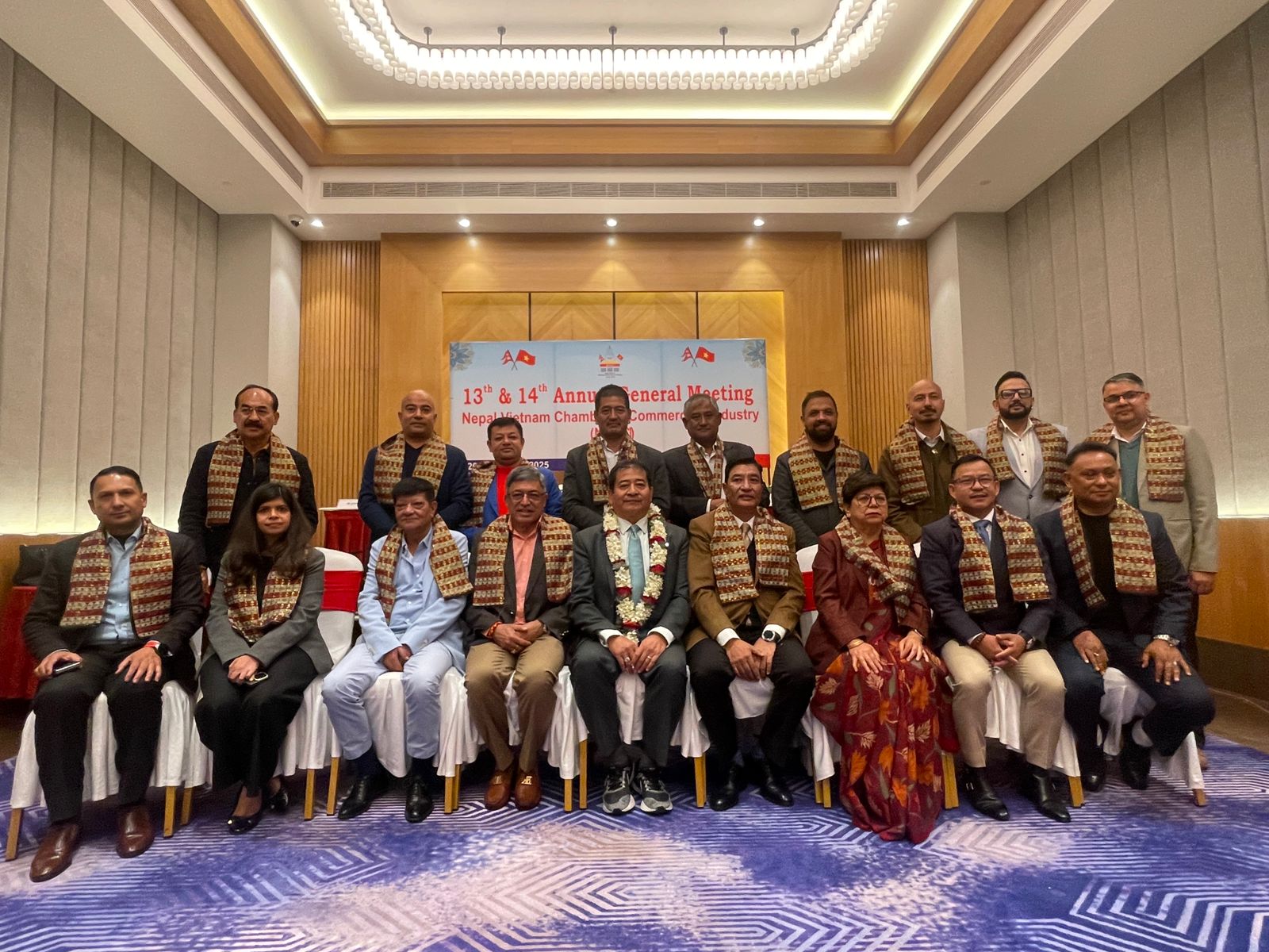 यस्तै, कोषाध्यक्षमा स्वाति घोरीवाल रहेकी छन् । सदस्यहरुमा क्रमशः मनिशलाल प्रधान, सुशील स्थापित, दिपक महर्जन, संजीव तुलाधर, राजु श्रेष्ठ, श्याम मारवाडी, रश्मि पन्त, कुमार श्रेष्ठ, प्रकाश रेग्मी, आयूश बहादुर श्रेष्ठ, रमेश पराजुली, विधाता श्रेष्ठ, अच्युत बहादुर हाडा, सक्षम घिमिरे र सर्वोत्तम लाल श्रेष्ठ रहेका छन् । साथै, चेम्बरको सल्लाहकारमा डा. सरोज अधिकारी, चेम्बरको संरक्षकमा संस्थापक अध्यक्ष एवं अवैतनिक वाणिज्य दूत, डा. राजेशकाजी श्रेष्ठ रहेको नेपाल भियतनाम चेम्बर अफ कमर्श एण्ड इण्डष्ट्रिजले जनाएको छ ।
