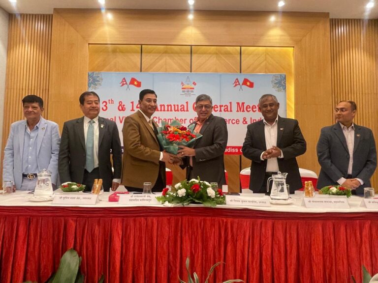 काठमाडौँ । नेपाल भियतनाम चेम्बर अफ कमर्श एण्ड इण्डष्ट्रिजको वार्षिक साधारणसभा सम्पन्न भएको छ । नेपालका लागि भियतनामका महावाणिज्य दूत राजेशकाजी श्रेष्ठको प्रमुख आतिथ्यतामा साधारण सभा सम्पन्न भएको हो ।