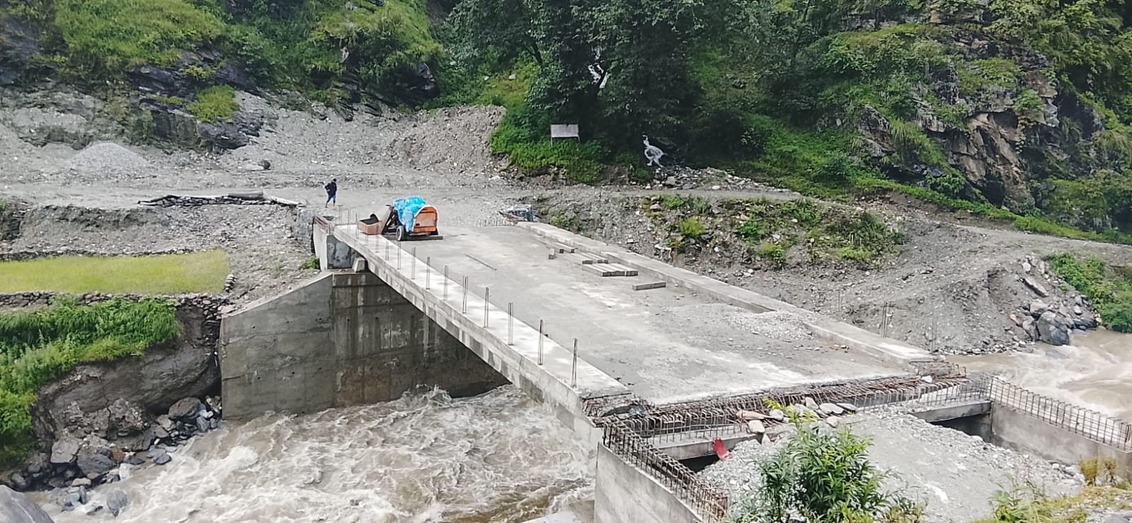 गत असार मसान्तसम्म पुलको निमार्ण कार्य सम्पन्न गर्ने लक्ष्य राखिए पनि बर्षातको समयमा सामान ढुवानीमा समस्या हुँदा काममा ढिलासुस्ती भएको हो। २०८० मंसिर २९ गते ठेक्का सम्झौता भएको उक्त पुलको निमार्ण कार्य अहिले करिब ९० प्रतिशत पूरा भएको छ । ५ करोड ३४ लाख १० हजार ९१८ रुपैँया लागतमा आईएस पावर अफ जेभी निर्माण कम्पनीले २०८० मंसिर २९ गते पुल निमार्णको ठेक्का सम्झौता गरेको थियो ।