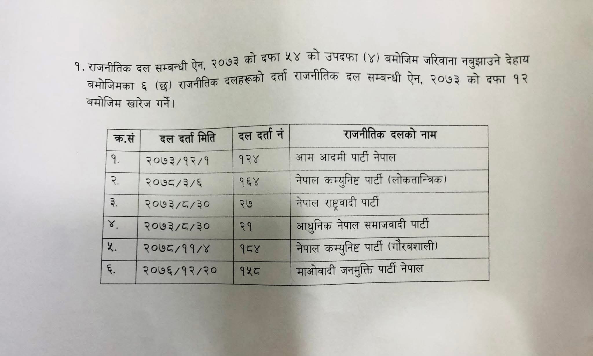 यी हुन् दर्ता खारेज भएका दल