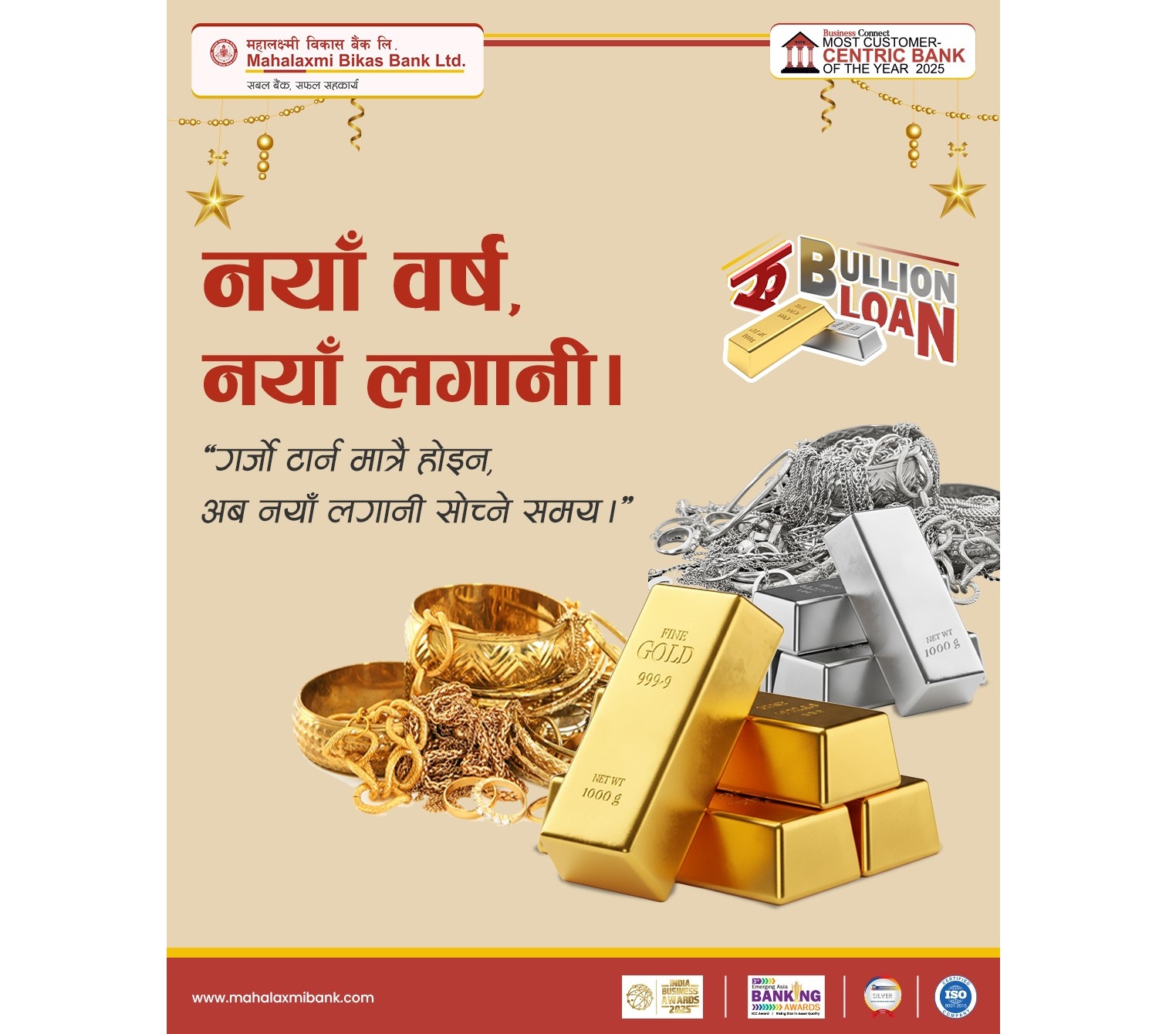 महालक्ष्मी विकास बैंकले अंग्रेजी नयाँ वर्ष २०२६ को अवसरमा आकर्षक सुविधा रहने गरी परिमार्जित सुनचाँदी धितो कर्जा प्रदान गर्ने भएको छ । बैंकका अनुसार नेपाली बजारमा सुन तथा चाँदीप्रतिको आकर्षण उल्लेखनीय रूपमा बढ्दै गइरहेको छ ।