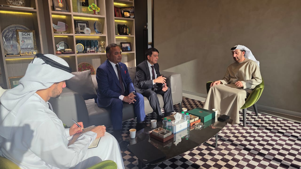 संयुक्त अरब इमिरेट्स (यूएई) का लागि नेपाली राजदूत तेजबहादुर क्षेत्रीको उपस्थितिमा सम्पन्न भेटवार्तामा दुवै पक्षले आगामी दिनमा नेपाल–यूएई आर्थिक सहकार्यलाई थप प्रभावकारी बनाउँदै पारस्परिक लाभका साझेदारीहरू अघि बढाउने प्रतिबद्धता व्यक्त गरेका छन् ।