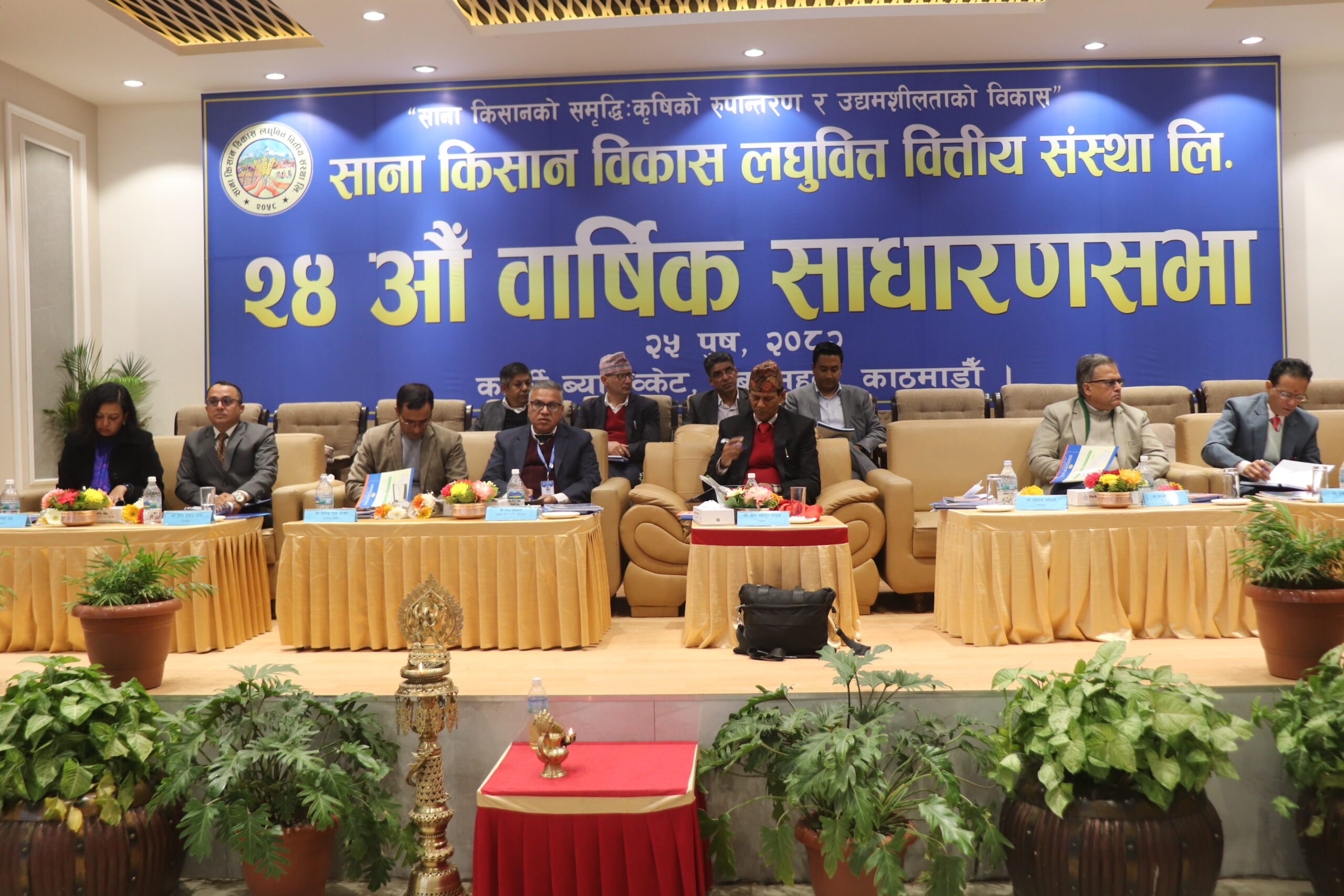 साना किसान विकास लघुवित्त वित्तीय संस्था लिमिटेडको २४ औँ वार्षिक साधारणसभा पुस २५ गते सम्पन्न भएको छ । सञ्चालक समितिका अध्यक्ष खेम बहादुर पाठकको अध्यक्षतामा सभा सम्पन्न भएको हो ।