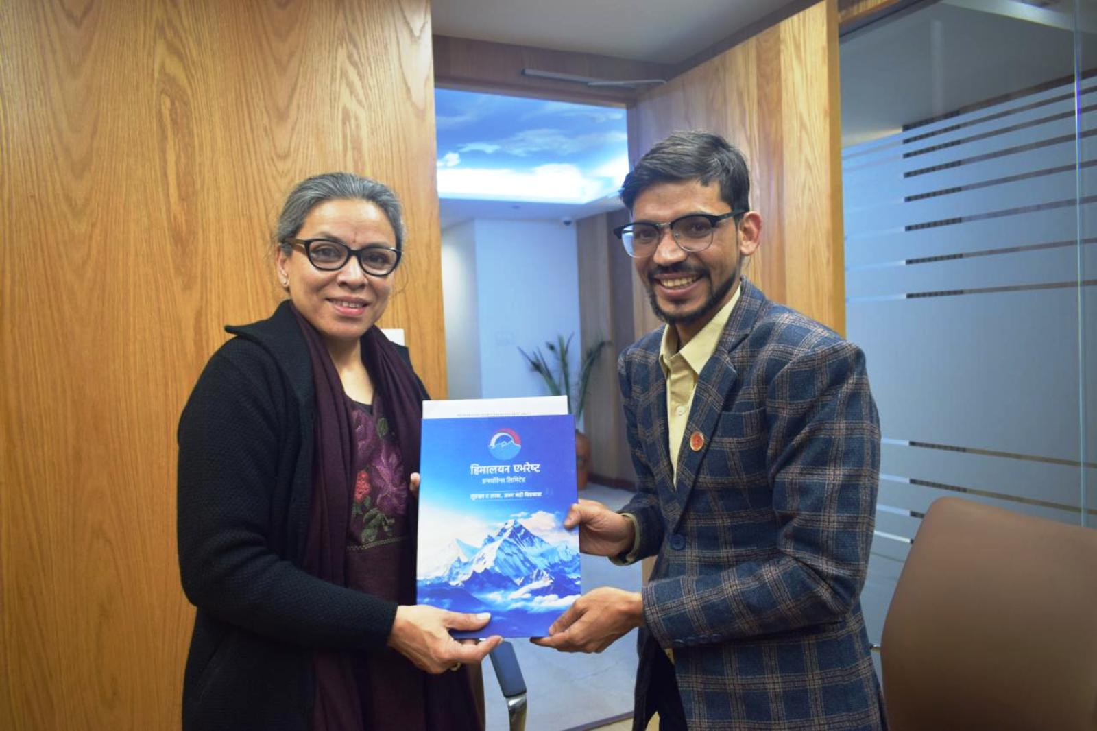 स्वास्थ्य तथा दुर्घटना बीमाको लागि हिमालयन एभरेष्ट इन्स्योरेन्सकी प्रमुख कार्यकारी अधिकृत (सिइओ) अञ्जु श्रेष्ठले सेजनका अध्यक्ष भागवत भट्टराईलाई औपचारिक रूपमा बीमा पोलिसी हस्तान्तरण गरेकी हुन्।