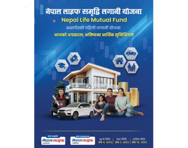 काठमाडौं । नेपालको सर्वाधिक विश्वासिलो जीवन बीमा कम्पनी नेपाल लाइफ इन्स्योरेन्स कम्पनी लिमिटेड कोष प्रवद्र्घक रहेकोर नेपाल लाइफ क्यापिटल लिमिटेड योजना व्यवस्थापक रहेको “नेपाल लाइफ समृद्धि लगानी योजना (Nepal Life Samriddhi Lagani Yojana)” नामक सामूहिक लगानी कोषले आफ्ना इकाईहरु आज मिति २०८२ साल माघ ४ गते देखि सर्वसाधारण तथा संस्थापक लगानीकर्ताका लागि बिक्रिमा ल्याएको छ ।