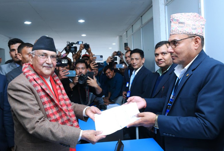 काठमाडौं । नेकपा एमालेका अध्यक्ष केपी शर्मा ओलीले उम्मेदवारी दर्ता गराएका छन् । मंगलबार निर्वाचन कार्यालय झापा पुगेर ओलीले झापा ५ मा उम्मेदवारी दर्ता गराएका हुन् ।