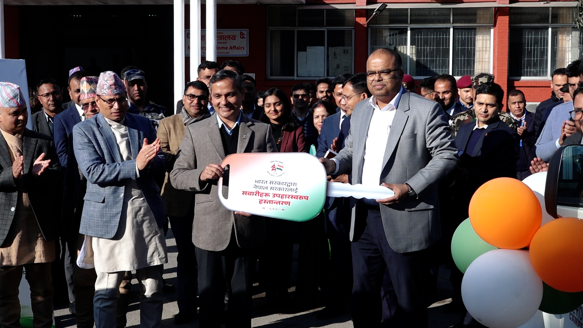 मंगलबार सिंहदरबारमा आयोजित एक कार्यक्रमका बीच भारतीय दूतावासले ६१ वटा क्याबिन पिक भ्यान सकारलाई हस्तान्तरण गरेको गृह मन्त्रालयका प्रवक्ता आनन्द काफ्ले जानकारी दिए ।