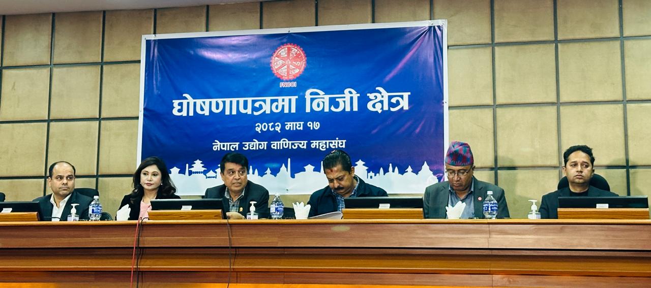 नेपाल उद्योग वाणिज्य महासंघ (एफएनसीसीआई) ले आसन्न निर्वाचनलाई लक्षित गरी राजनीतिक दलहरूले तयार गर्ने घोषणापत्रमा निजी क्षेत्रको संरक्षण, प्रवर्द्धन र मनोबल अभिवृद्धिसम्बन्धी स्पष्ट नीति समेट्न आग्रह गरेको छ ।