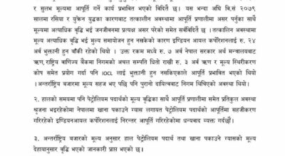 विगतमा रसिया-युक्रेन युद्धका कारण इन्धनको बक्यौता रकम भुक्तानी गर्न नसक्दा आपूर्ति नै प्रभावित भएको अनुभवलाई स्मरण गर्दै निगमले हालको विषम परिस्थितिमा आपूर्ति प्रणालीलाई सहज बनाइराख्न मूल्य समायोजन अनिवार्य भएको स्पष्ट पारेको छ ।