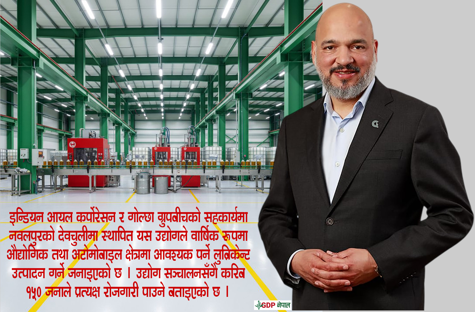 गोल्छा ग्रुपका अध्यक्ष तथा प्रबन्ध निर्देशक शेखर गोल्छाले सामाजिक सञ्जालमार्फत जानकारी दिँदै देवचुलीमा ‘सर्भो’ ब्रान्ड अन्तर्गत लुब्रिकेन्ट उत्पादन गर्ने उद्योग सञ्चालनमा आएको घोषणा गरेका हुन्।