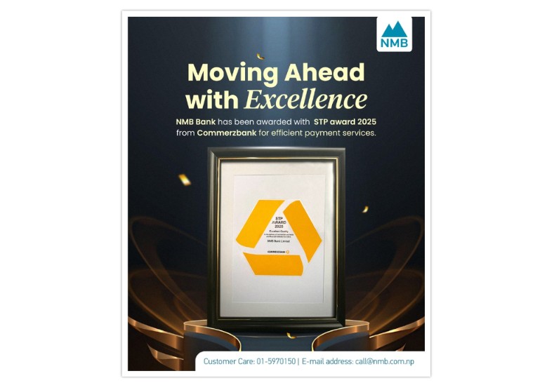 कामाडौँ । एनएमबि बैंकले व्यावसायिक भुक्तानी तथा वित्तीय संस्था स्थानान्तरणमा उत्कृष्ट गुणस्तर र दक्षता प्रदर्शन गरेबापत कमर्ज बैंक एजी, जर्मनीबाट प्रतिष्ठित ‘एसटीपी अवार्ड २०२५’ प्राप्त गरेको छ ।