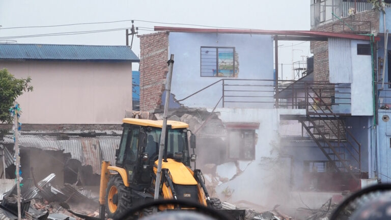 मनोहराको सुकुम्बासी बस्तीका घर-टहरा भत्काउन सुरू भएको छ। शनिबार स्थानीयको अवरोधका कारण प्रहरी संरचना नभत्काइ फर्केको थियो।