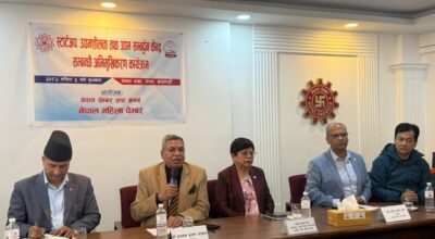 काठमाडौं । नेपाल चेम्बर अफ कमर्सको पदाधिकारी टोली र नेपालका लागि श्रीलङकाका राजदूूत रुवान्थी डेल्पितीयाबीच दुई देशको व्यापार सहजीकरण एवं हवाईसेवा विस्तार गर्ने विषयमा छलफल भएको छ । नेपाल र श्रीलङबीच कुटनीतिक सम्वन्धका साथै सामाजिक, सांस्कृतिक र धार्मिक सम्वन्ध ऐतिहासिक रहेको पृष्ठभूमिमा व्यापार सहजीकरण गर्दै हवाई सेवा विस्तार गरेर पर्यटन क्षेत्रमा दुवै देशले लाभ लिन…