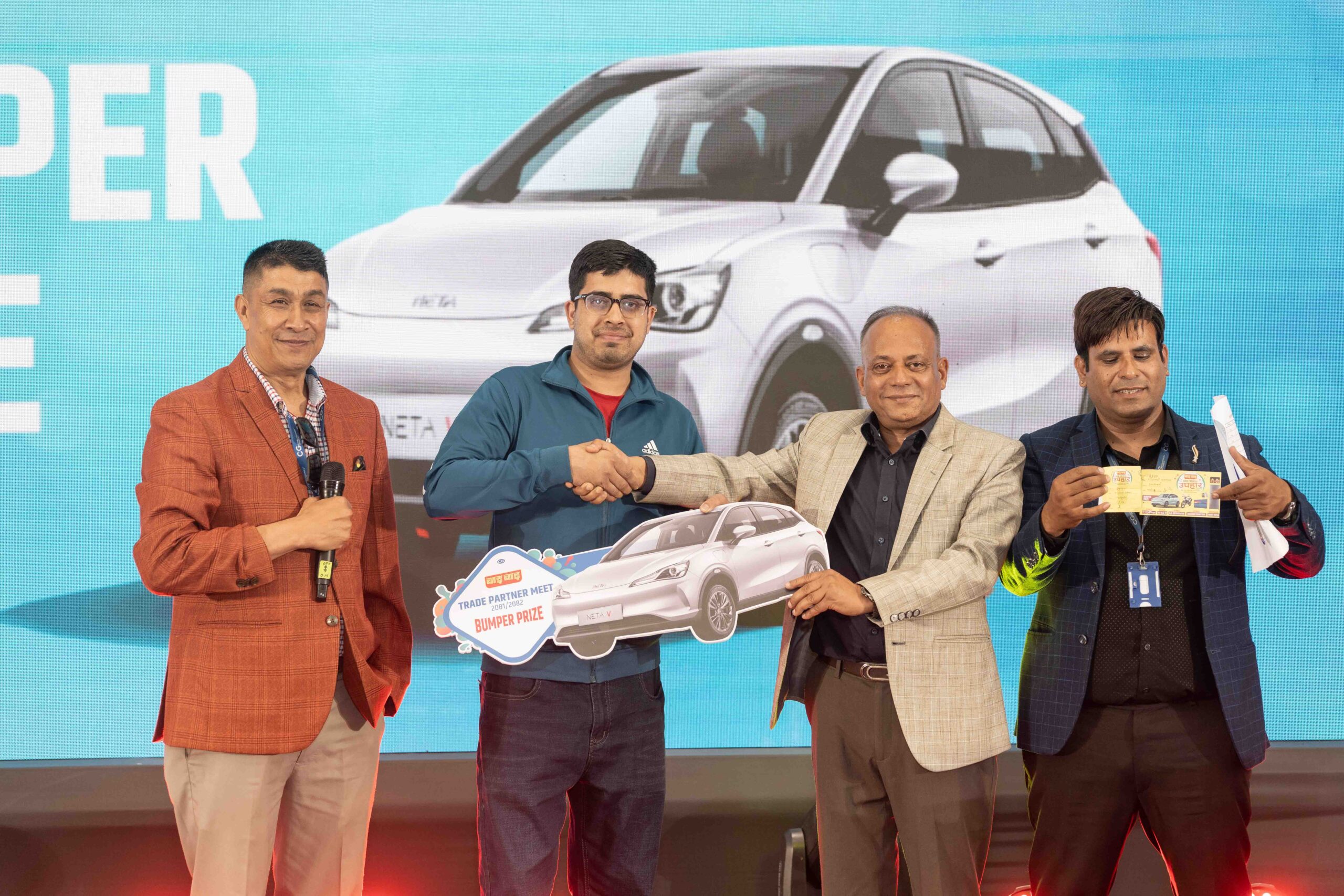 ५ जनाले जिते हिरो एक्सपल्स मोटरसाइकल, ५ जनाले एलजी टिभी र १० जनाले एलजी फ्रीज वाइवाइ चाउचाउले थोक विक्रेताहरुलाई लक्षित गर्दै संचालन गरेको ‘थोक विक्रेता उपहार योजना’ अन्तर्गत जोरपाटीस्थित तिवारी स्टोरका संचालक रामेश्वर तिवारीले नेटा भी कार जित्न सफल भएका छन्। तिवारीलाई वाइ वाइका प्रमुख कार्यकारी अधिकृत प्रदीप पुडासैनीले बुधबार ललितपुरमा आयोजित विशेष कार्यक्रममा कार…