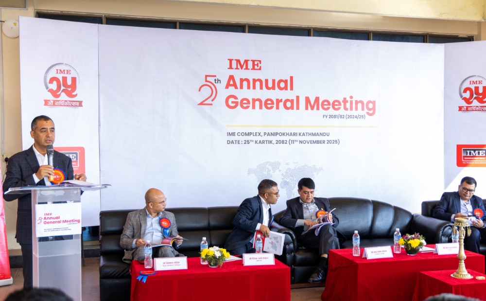 काठमाडौं । आइएमई लिमिटेडले २५ औँ वार्षिक साधारण सभा सम्पन्न गरेको छ । आइएमईका संस्थापक तथा अध्यक्ष हेमराज ढकालको अध्यक्षतामा सम्पन्न साधारण सभामा ढकालले वार्षिक प्रतिवेदन प्रस्तुत गरे । सभाले सो वार्षिक प्रतिवेदन सर्वसम्मत रूपले पारित गरेको छ । सभामा अध्यक्ष ढकालले रेमिटेन्स सेवा उद्योग क्षेत्रमा अग्रणी कम्पनीको रूपमा रहेको आइएमई लिमिटेड सर्वाधिक लोकप्रिय ब्रान्डको…