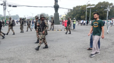 काठमाडौं । नेपाली सेनाले काठमाडौं उपत्यकाका तीनै जिल्लामा निषेधाज्ञा जारी राखेको छ । बिहीबार बिहान १० बजेदेखि बेलुका ५ बजेसम्म निषेधाज्ञा कायम गरिएको सेनाले जनाएको छ । अत्यावश्यक कामका लागि बिहान ६ बजेदेखि १० बजेसम्म र बेलुका ५ बजेदेखि ७ बजेसम्म आवतजावत गर्न पाइने समय तोकिएको नेपाली सेनाले जनाएको छ । बेलुकी ७ बजेदेखि बिहान…