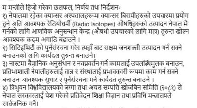 काठमाडौं । मन्त्रिपरिषद्का २० वटा निर्णयहरु सार्वजनिक भएको छ । शुक्रबार पत्रकार सम्मेलन गरी सञ्चार तथा सूचना प्रविधि मन्त्री तथा सरकारका प्रवक्ता जगदीश खरेलले बिहीबार बसेको मन्त्रिपरिषद्को बैठकका निर्णय सार्वजनिक गरेका हुन् । यस्ता छन् निर्णयहरु: १.वैकल्पीक विकास वित परिचालनका सम्बन्धमा व्यवस्था गर्न बनेको विधेयक संसदसमक्ष पेश गर्न स्वीकृति दिने । २.भदौ २३ र २४…