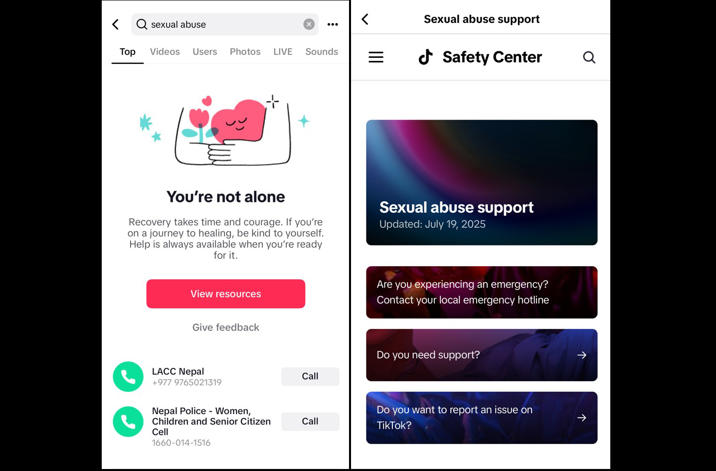नयाँ फिचर मार्फत यौन दुर्व्यवहारसम्बन्धी शब्दहरू खोज्दा अब सहायता स्रोतहरू र सुरक्षा जानकारीमा ‘रिडाइरेक्ट’ हुने काठमाडौं । टिकटकले आज नेपालमा नयाँ ‘सर्च गाइड’ सार्वजनिक गरेको छ, जसको उद्देश्य यौन दुर्व्यवहारको जोखिममा परेका वा त्यसबाट प्रभावित प्रयोगकर्ताहरूलाई समयमै सहयोग र आवश्यक समर्थन प्रदान गर्नु हो। यो सुविधा टिकटकको समग्र सुरक्षा अभियानको हिस्सा हो, जसको उद्देश्य प्रयोगकर्ताहरूलाई…